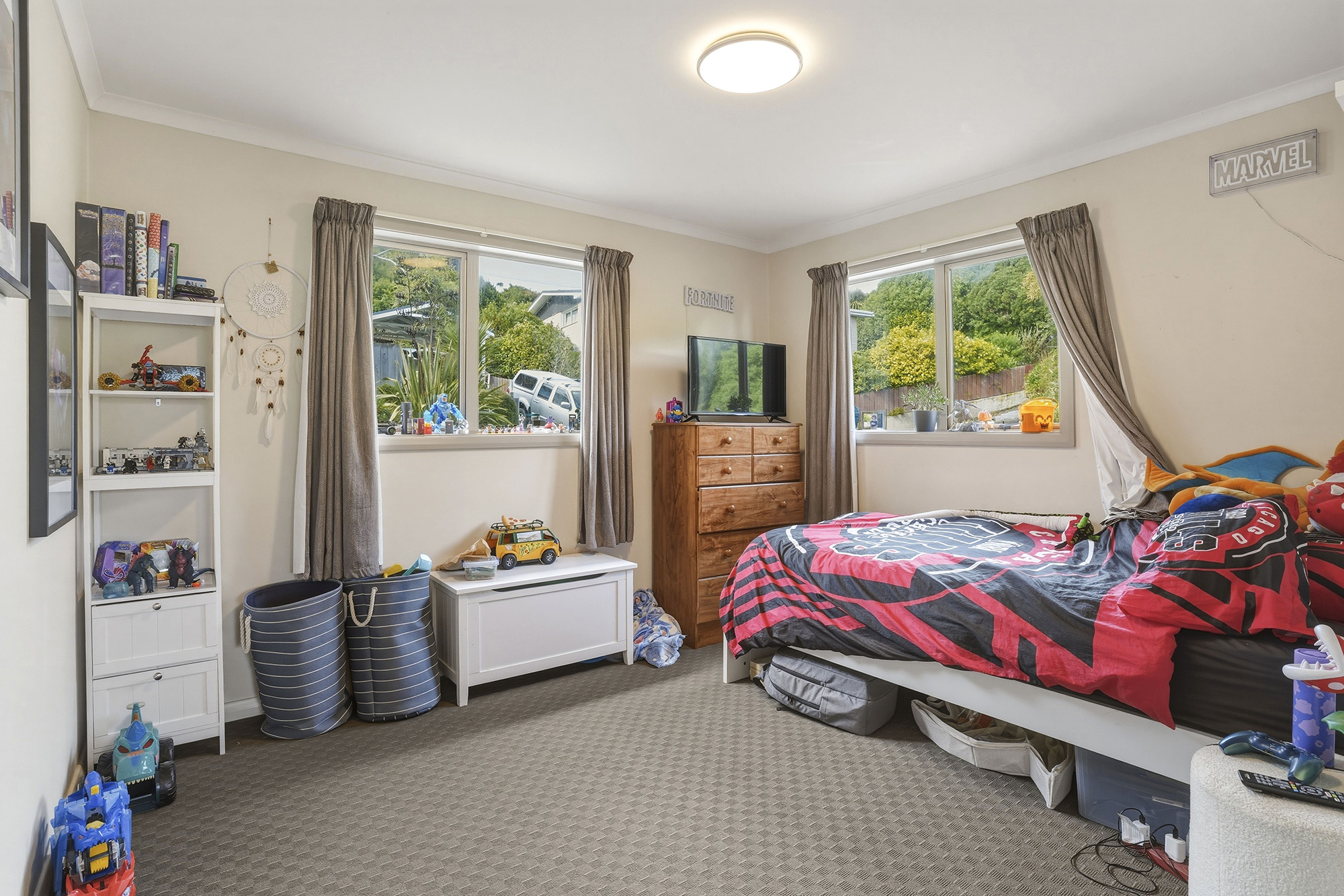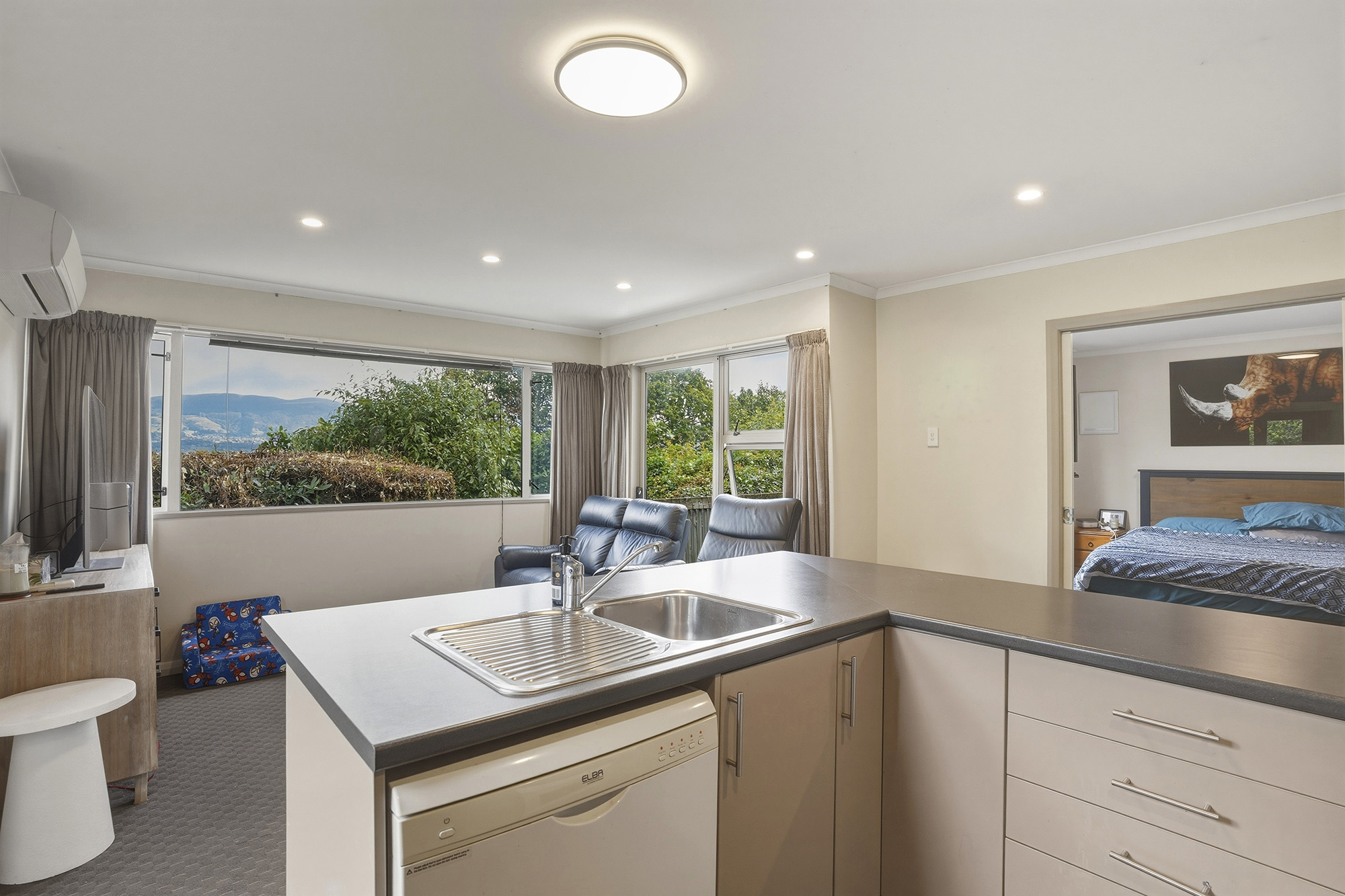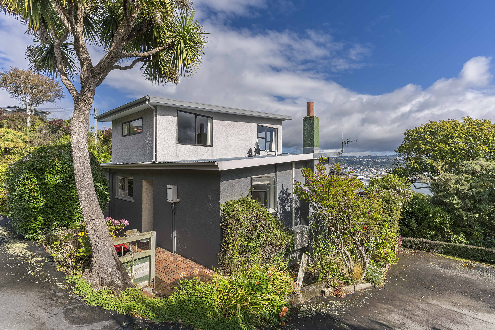 101 Doon Street - The original three-bedroom home offers multiple living areas, including an upstairs lounge that captures stunning views across the Otago Harbour. A modernised bathroom and a sun-filled kitchen add comfort and appeal.