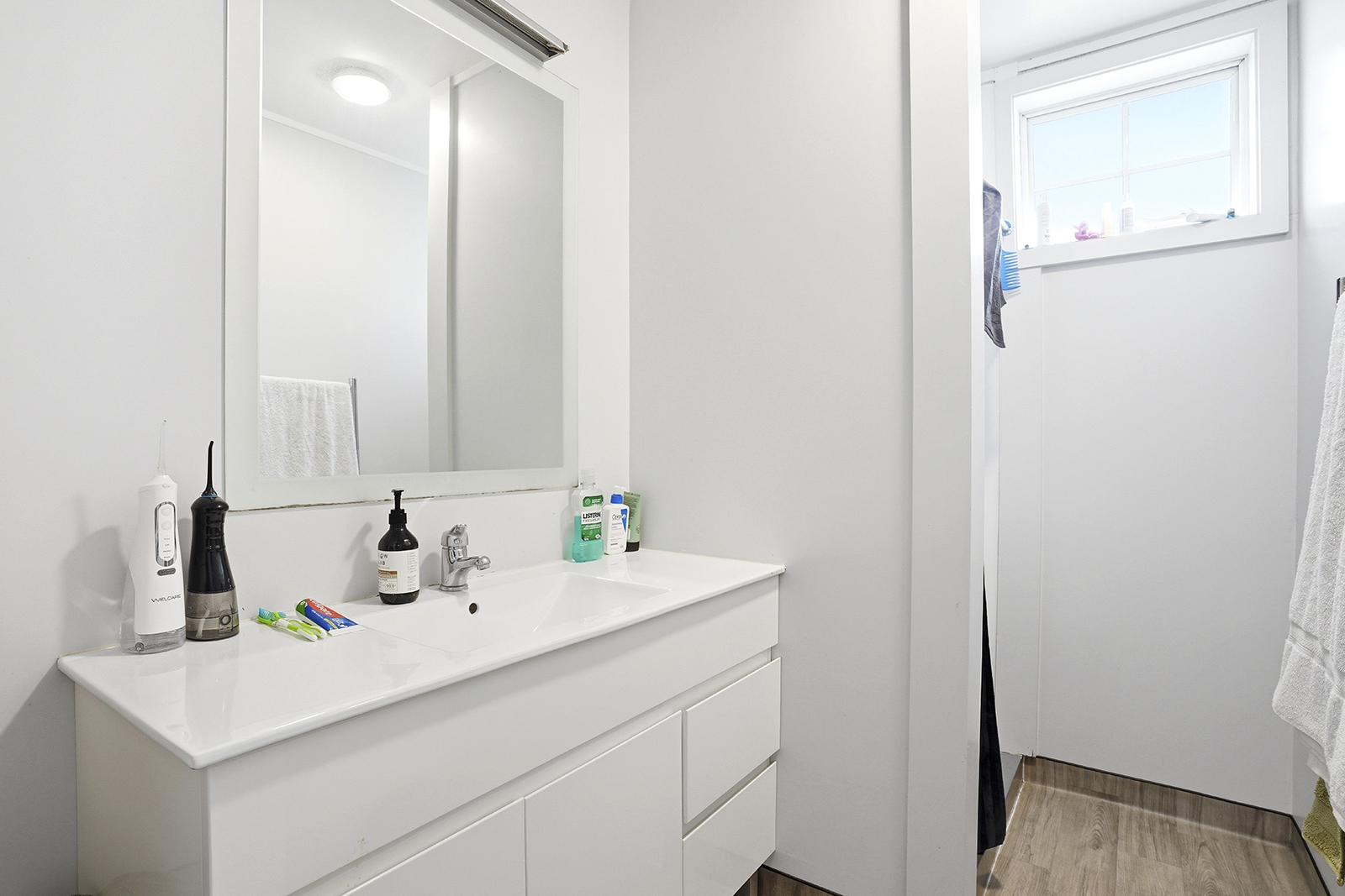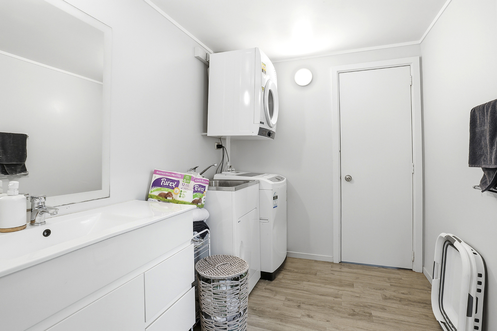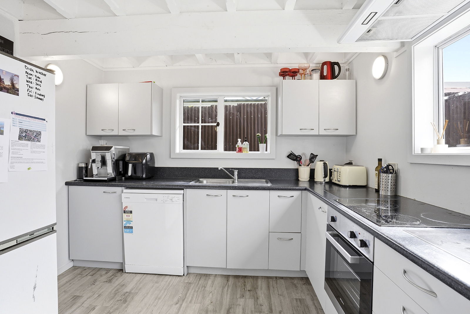 The ground floor immediately sets the tone, opening into a generous open-plan living and kitchen area designed for both durability and tenant appeal. The kitchen has been tastefully modernised, while the lounge offers a warm, inviting atmosphere reminiscent of a refined alpine retreat. This level is further complemented by two bedrooms, a full bathroom incorporating laundry facilities, and a separate toilet. An efficient and practical configuration for a high-occupancy setting.