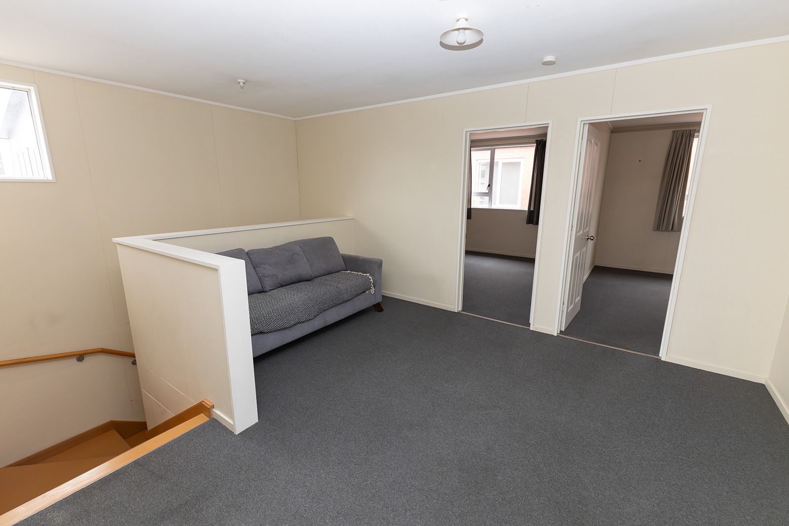 This expansive property features seven individual studio rooms spread over two levels, ensuring ample space for privacy and study. With one bathroom downstairs and another upstairs, morning routines are simplified for all residents.