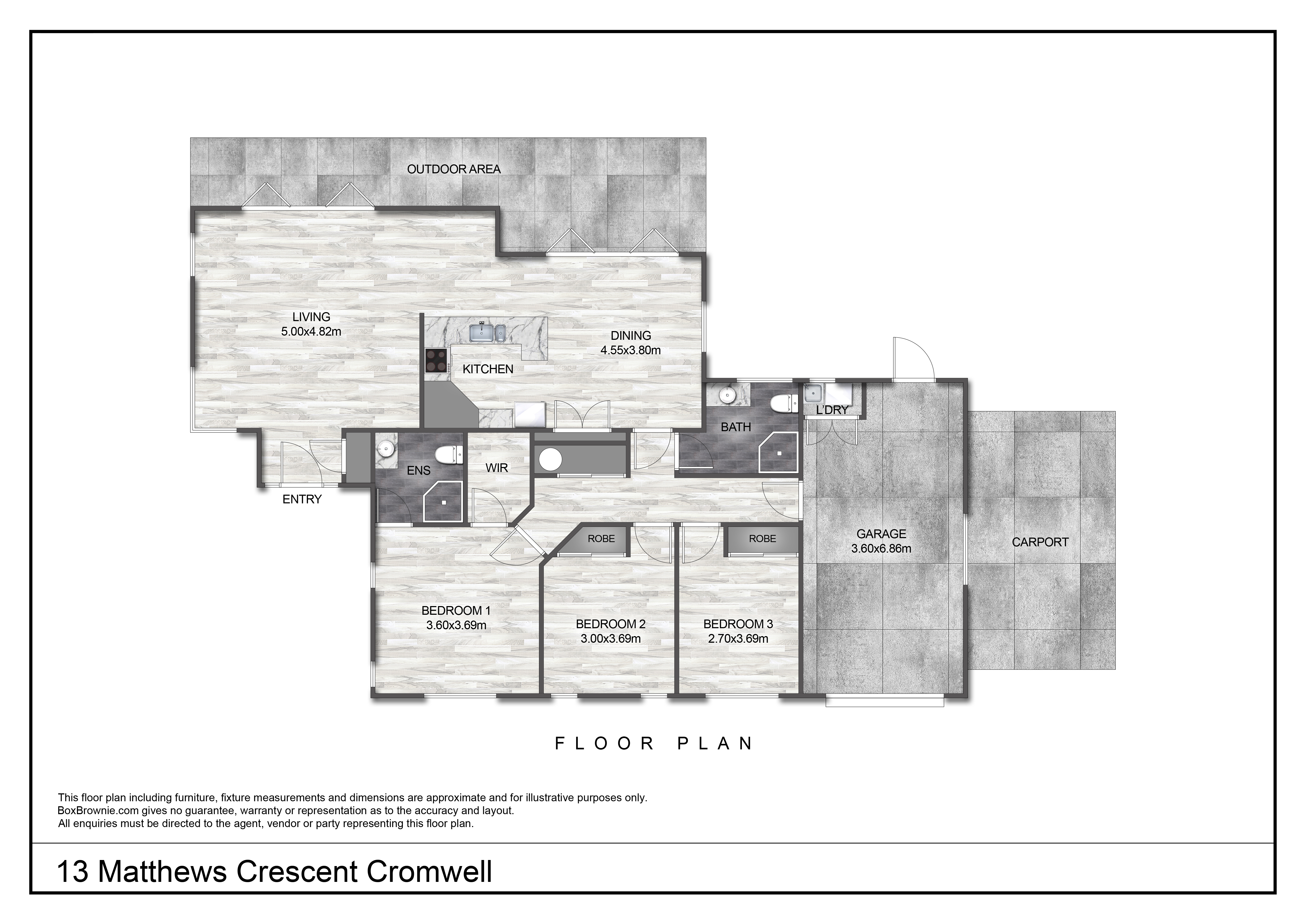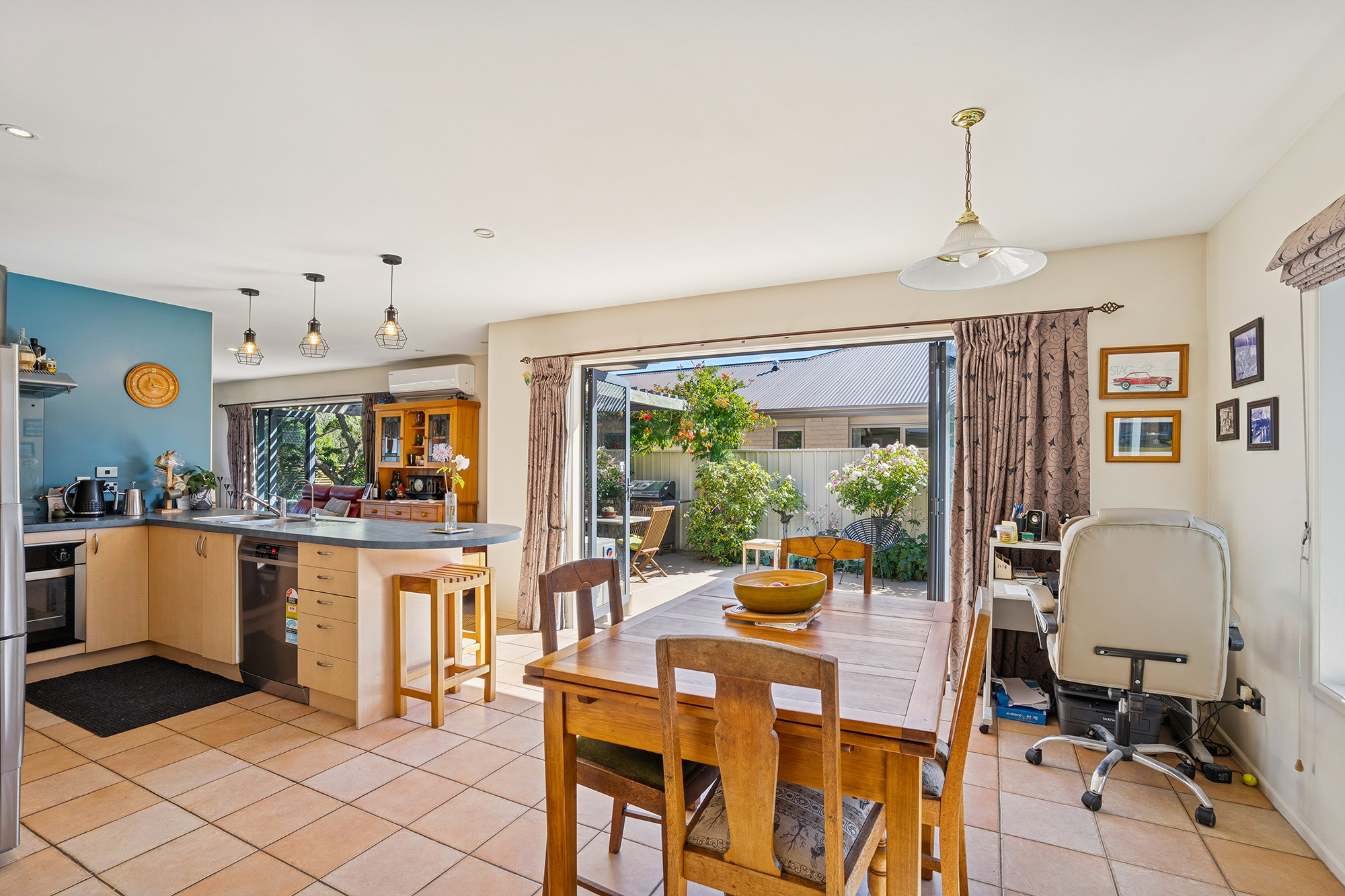The kitchen is a generous size, with good storage and preparation area, with the dining area also accessing the outdoors. The home offers three double bedrooms and two bathrooms, including a master bedroom with ensuite and walk-in wardrobe. The layout is practical and well designed for relaxed everyday living. A single garage plus off-street parking and a carport gives you room for vehicles and a trailer or boat.