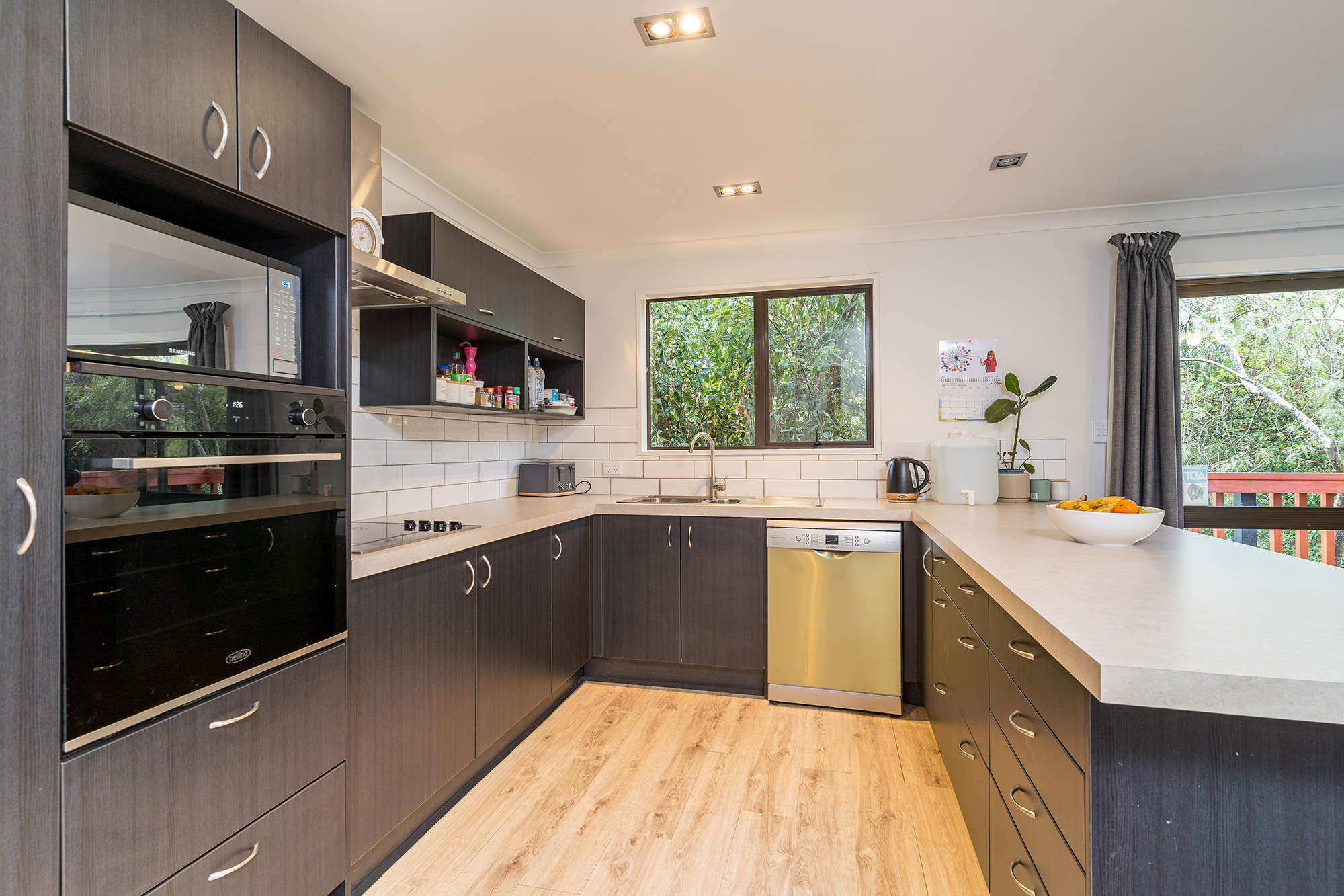 The sun-soaked open-plan living area is a true highlight, warmed by a new Yunca wood burner and a heat pump for year-round comfort. The generous family kitchen impresses with excellent storage and quality appliances including a new Bosch dishwasher, cooktop, wall oven, and rangehood. The dining area flows effortlessly to a private deck-ideal for summer meals. The lounge opens through french doors to a full-length covered deck, giving you exceptional indoor-outdoor living options.