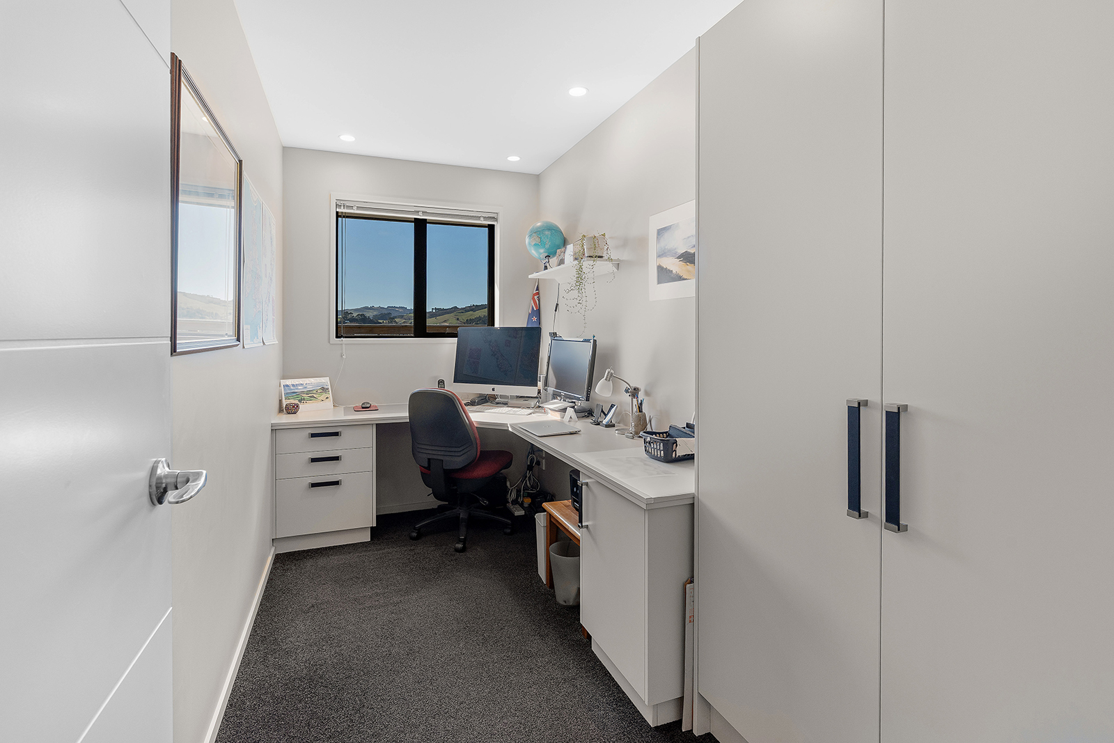 Step into a sunny, open-plan kitchen and living area - ideal for relaxing while basking in the sun and enjoying the peaceful outlook. Situated beside the living area is a dedicated office with built-in office furniture and storage. The master suite is a true retreat, featuring a private ensuite and a spacious walk-in wardrobe. Two additional bedrooms offer flexibility for family or guests.