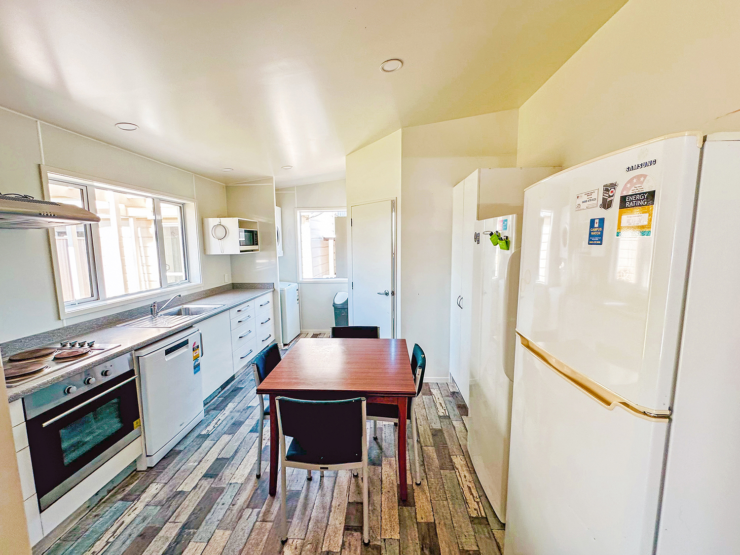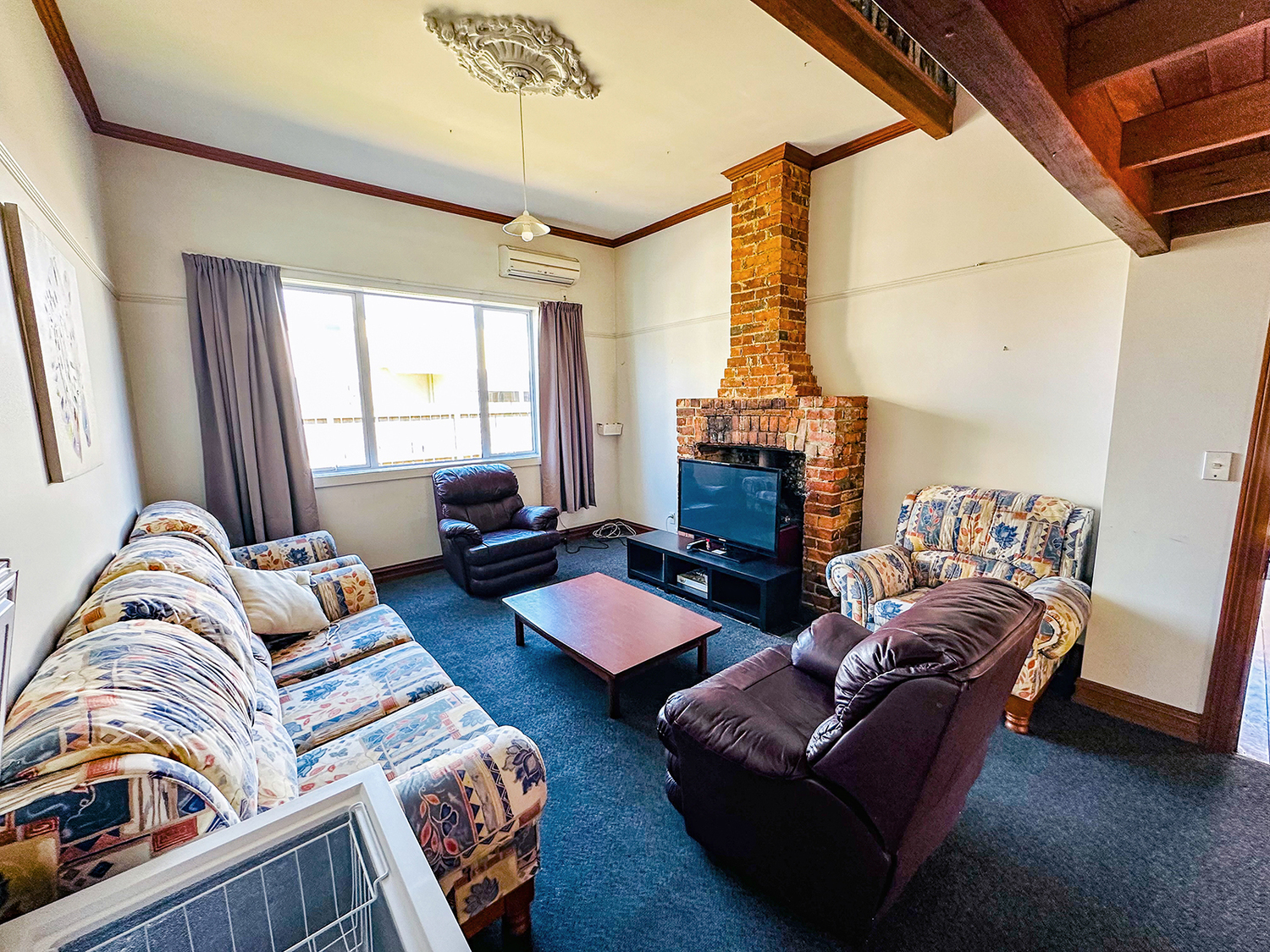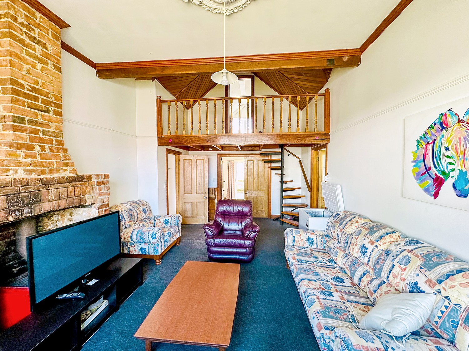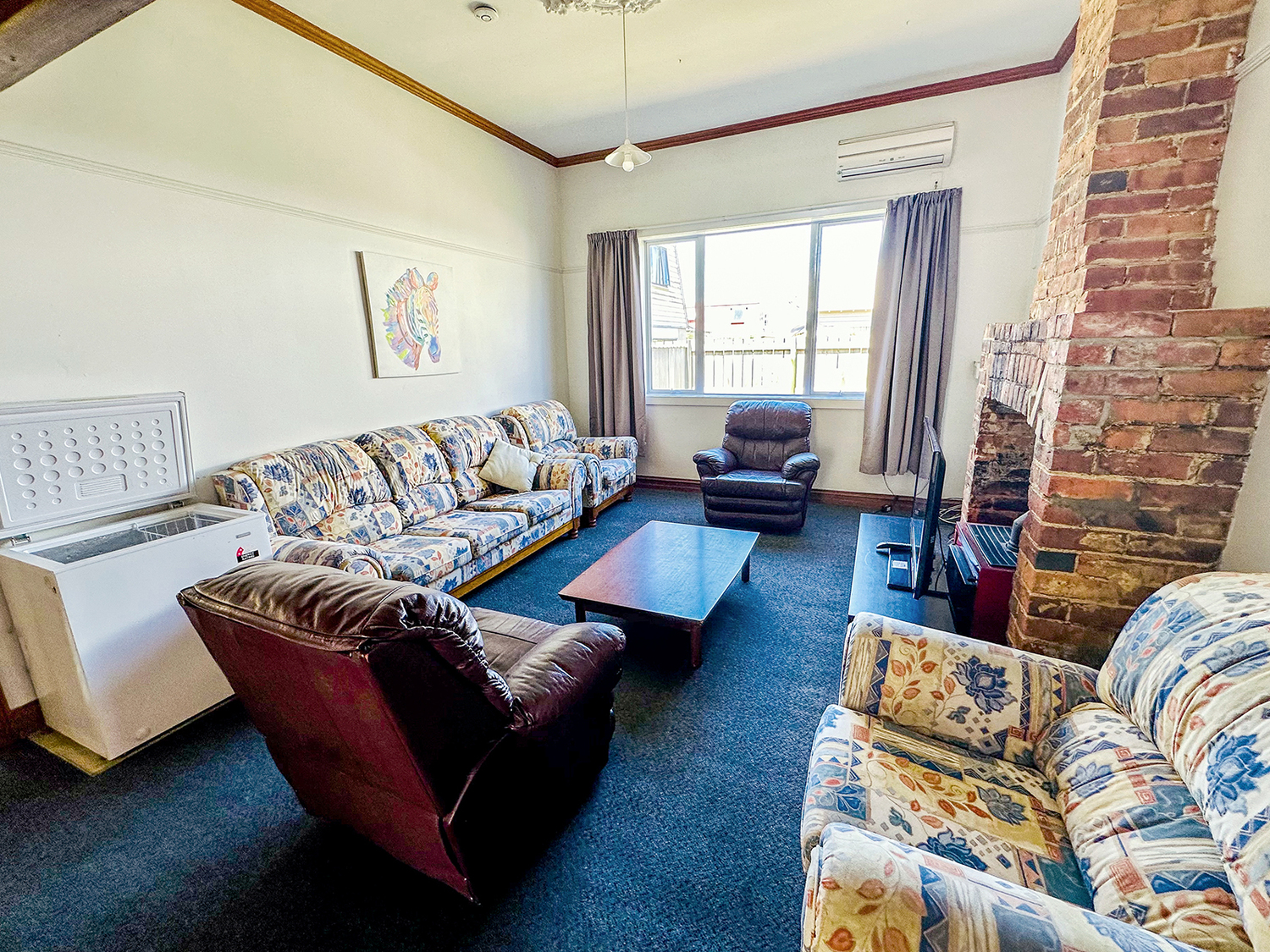 There are five bedrooms in the main house plus a sleepout with its own en-suite (covered access to the house – you’ll love it!). One bedroom in the main house is an attic room with a landing over the lounge area, quirky and gets good sun. Great lounge with well-appointed furniture supplied, heat pump, and a woodburner. Recently new kitchen. 2 full bathrooms in the main house, with showerdomes. Security stays on windows. All bedrooms individually locked on master key system. Smoke alarms in all bedrooms plus living areas.