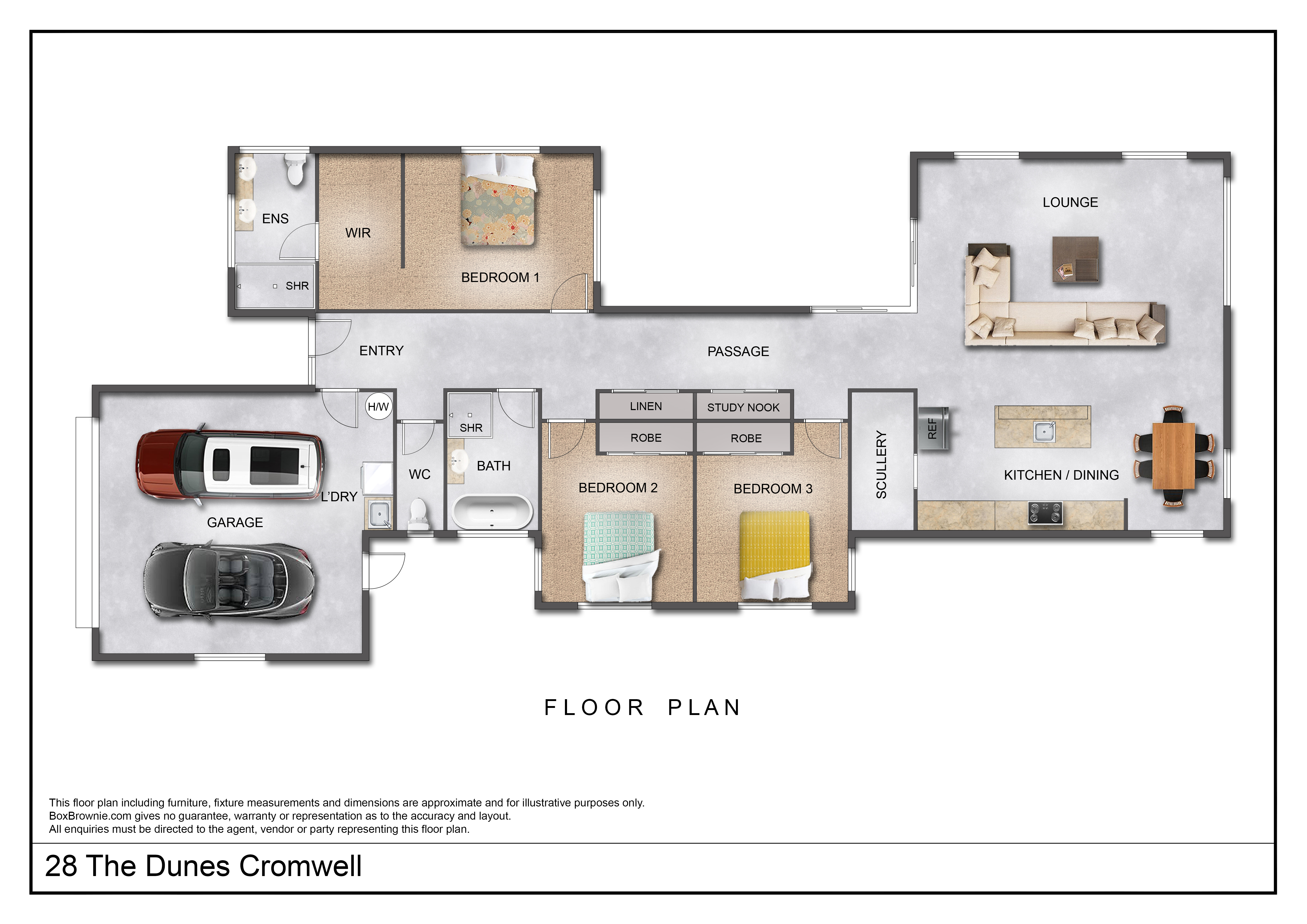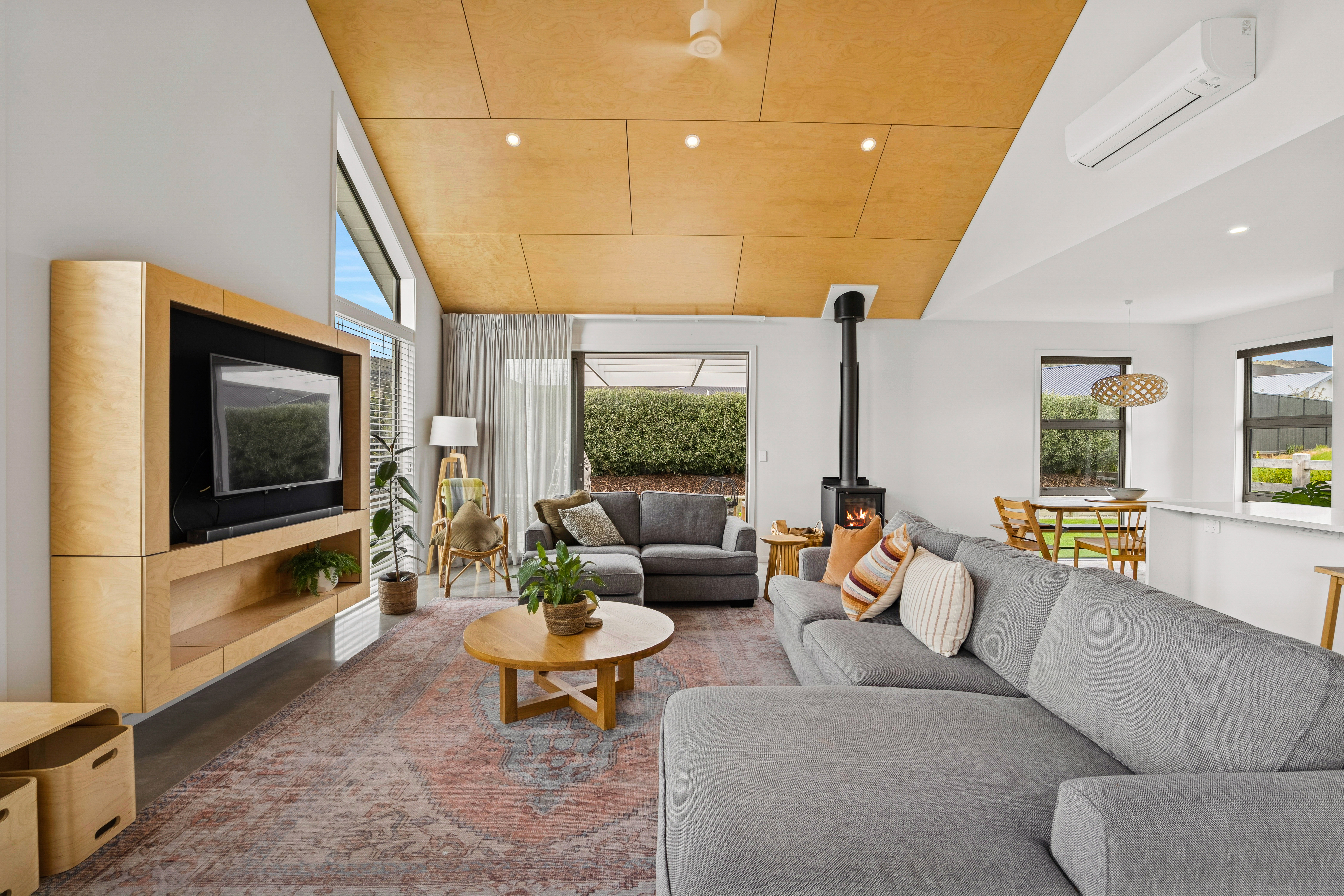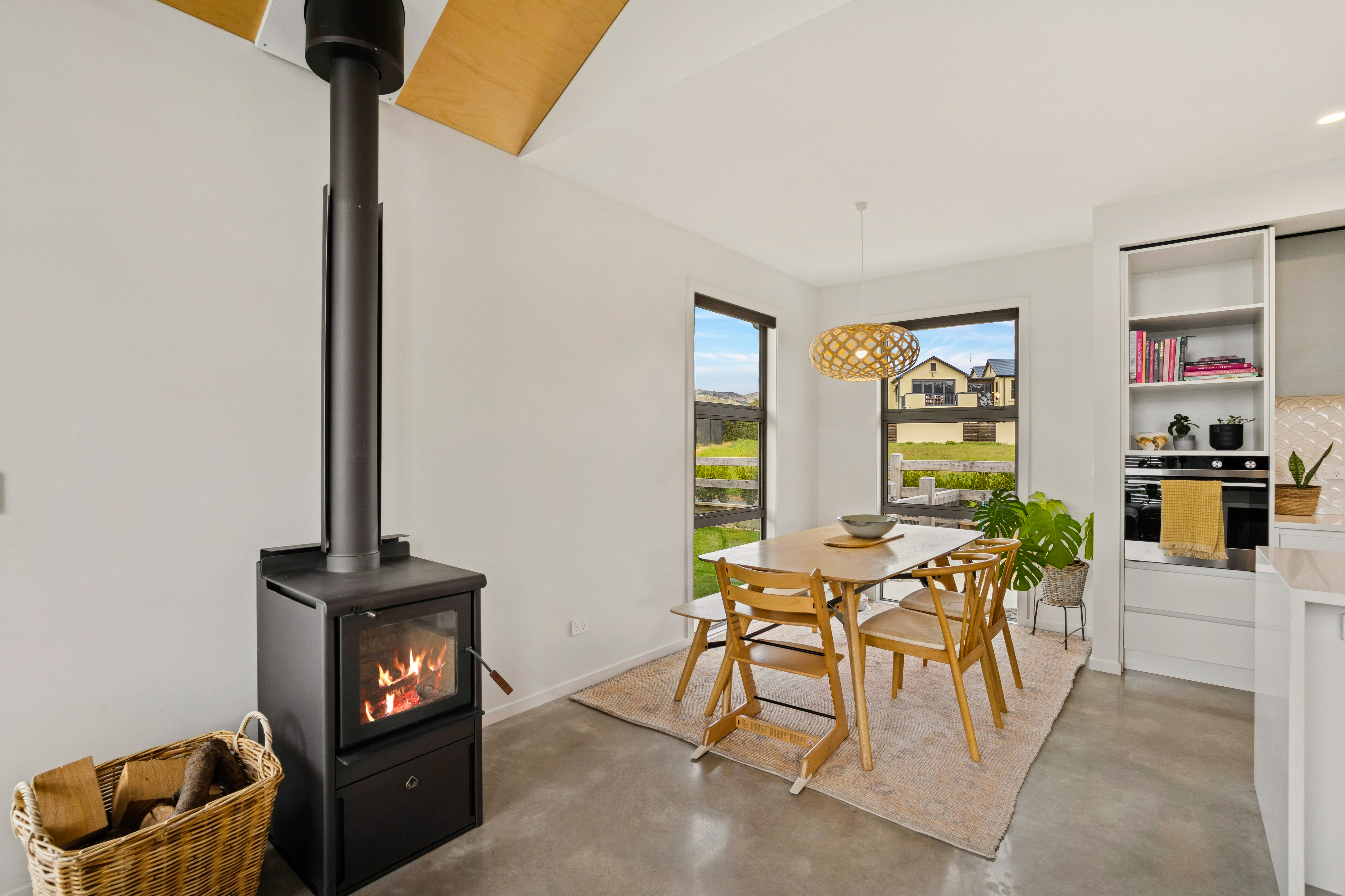 The master suite is a place to retreat to, and you will enjoy space, privacy and that extra bit of luxury. A beautiful ensuite featuring a double-headed tiled shower and a walk-in robe that will certainly house plenty of apparel. The other two double bedrooms both have built-in robes and are supported by a generous bathroom with bath, shower and vanity, along with separate toilet. An office nook hides the computer and paperwork and is positioned handy to the living area. The home enjoys a modern underfloor heating system, combined with a wood burner in the living area for that extra ambience during the cooler months.