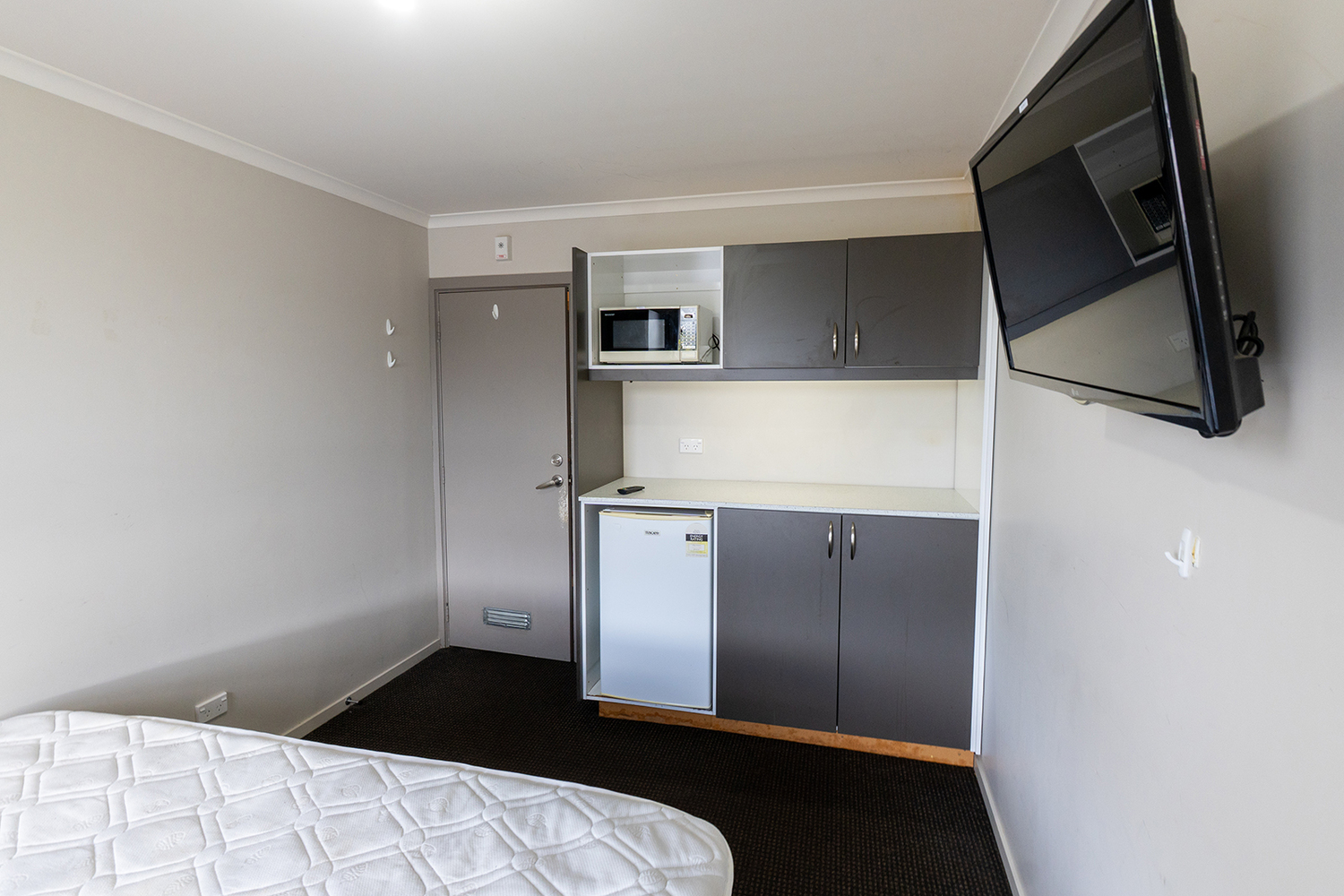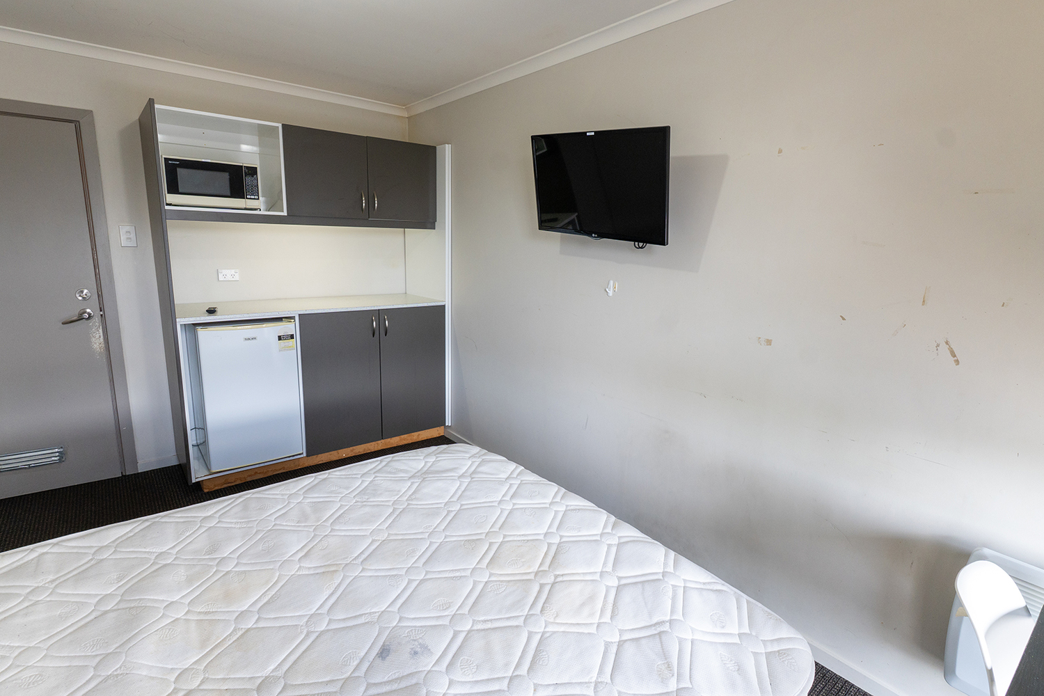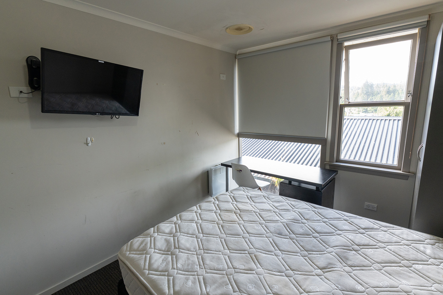 The rooms all come with a bed, desk and mini fridge.
