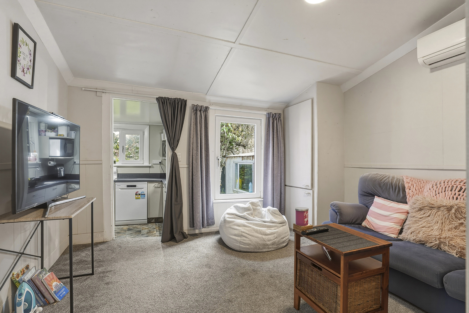 All four bedrooms are well-proportioned and include built-in wardrobes, with the added advantage of individual heat pumps in each room. This level of comfort and independence is rarely found across every bedroom and contributes to consistent tenant appeal. Two bathrooms are positioned off the hall for easy access. A separate lounge provides a defined living space and is fitted with its own heat pump. From here, a step-down transition leads into the kitchen, creating a natural separation between living and service areas. At the rear of the property, the outdoor space offers more than a standard section, with established fruit trees and raised vegetable gardens providing a functional and usable setting. A separate laundry with additional storage is also located at the back of the property, keeping utility areas practical and contained.