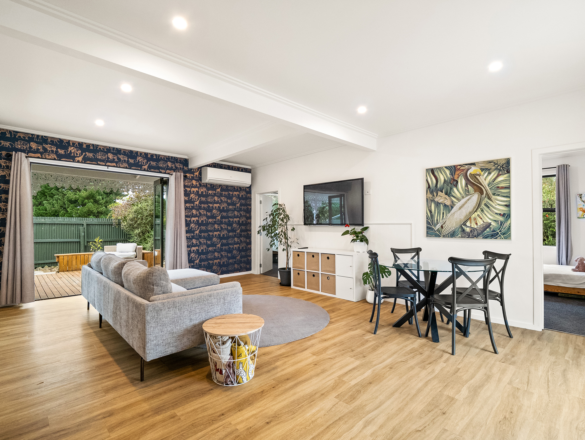 The tastefully renovated farmhouse offers warm and inviting living with three bedrooms, a well-appointed family bathroom, and a handy office nook-ideal for working from home or managing the day-to-day of rural life. The open plan kitchen, dining, and living area is light-filled and welcoming, creating a central hub for family living and entertaining.