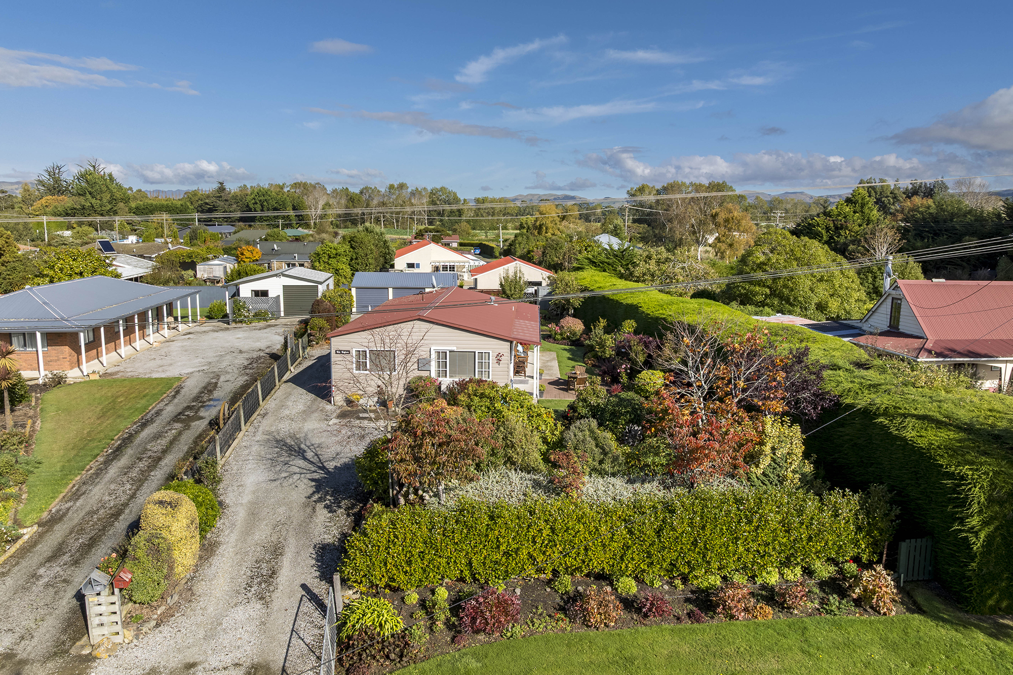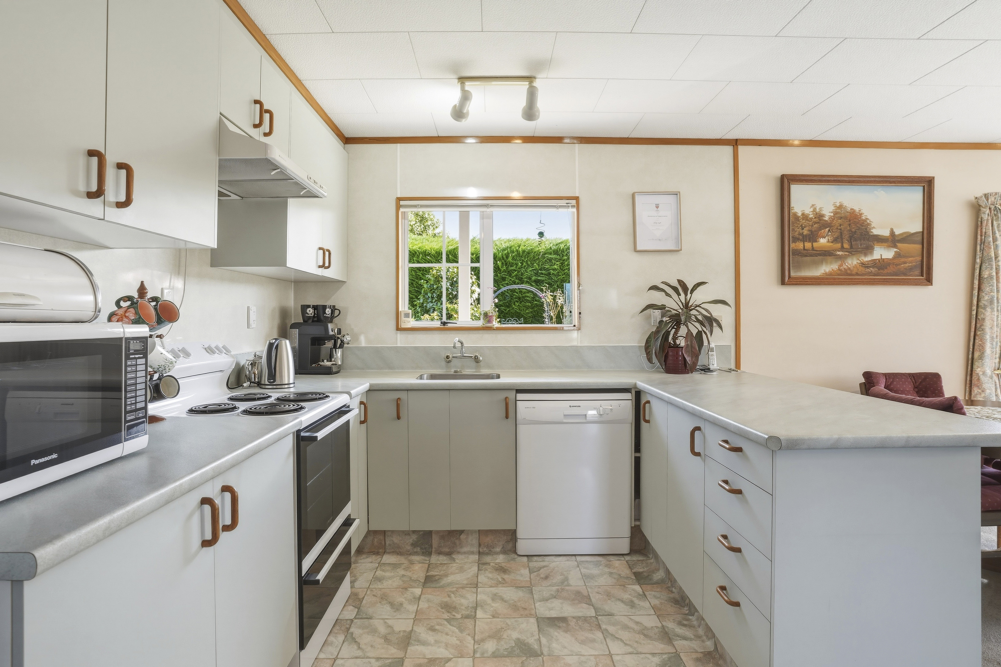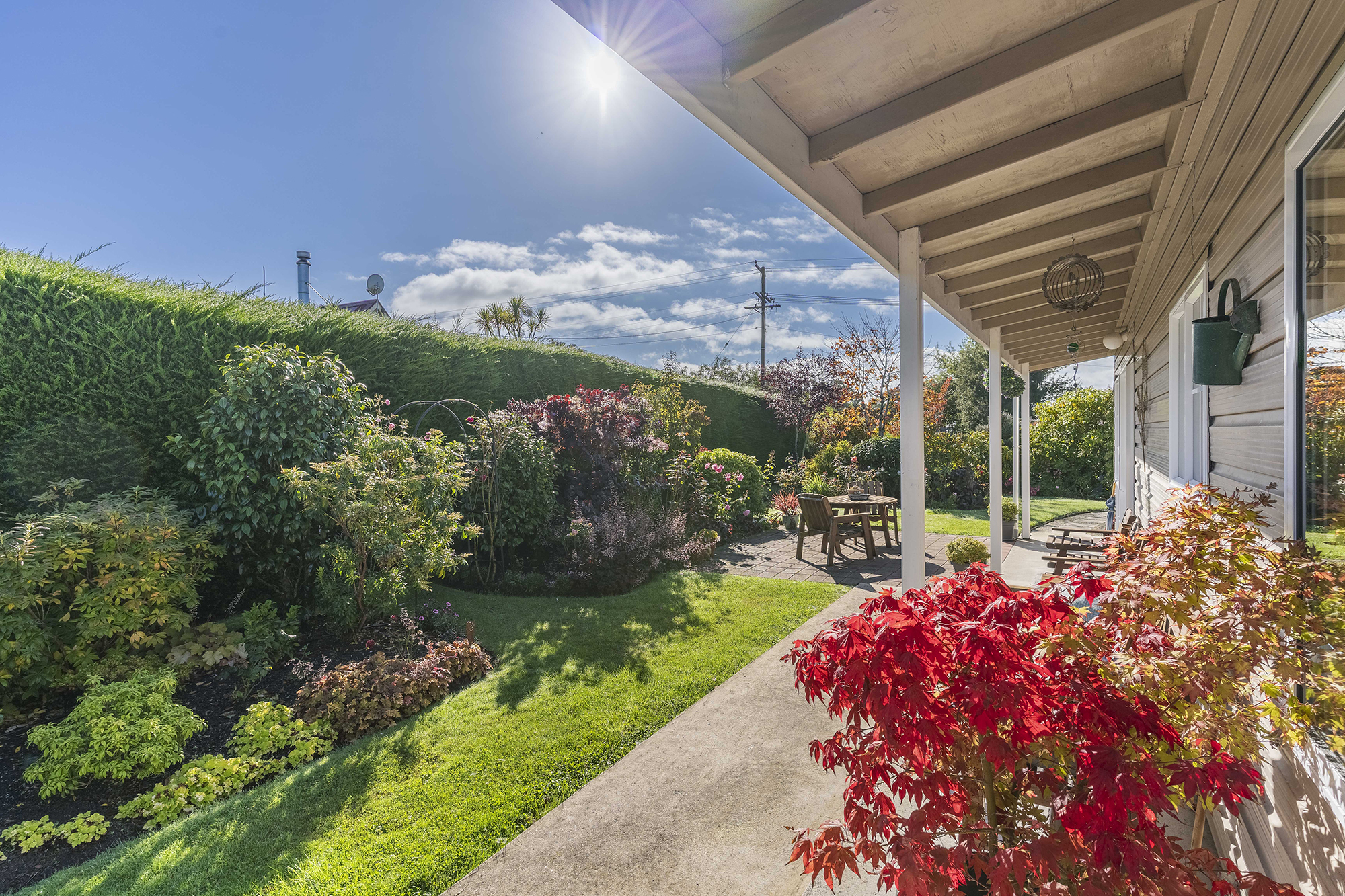 Bathed in sunshine, the open-plan living area is warm and inviting, complete with a modern heat pump for year-round comfort. It flows effortlessly onto a full-length covered deck-ideal for relaxing or entertaining while overlooking the vibrant, well-established flower gardens.