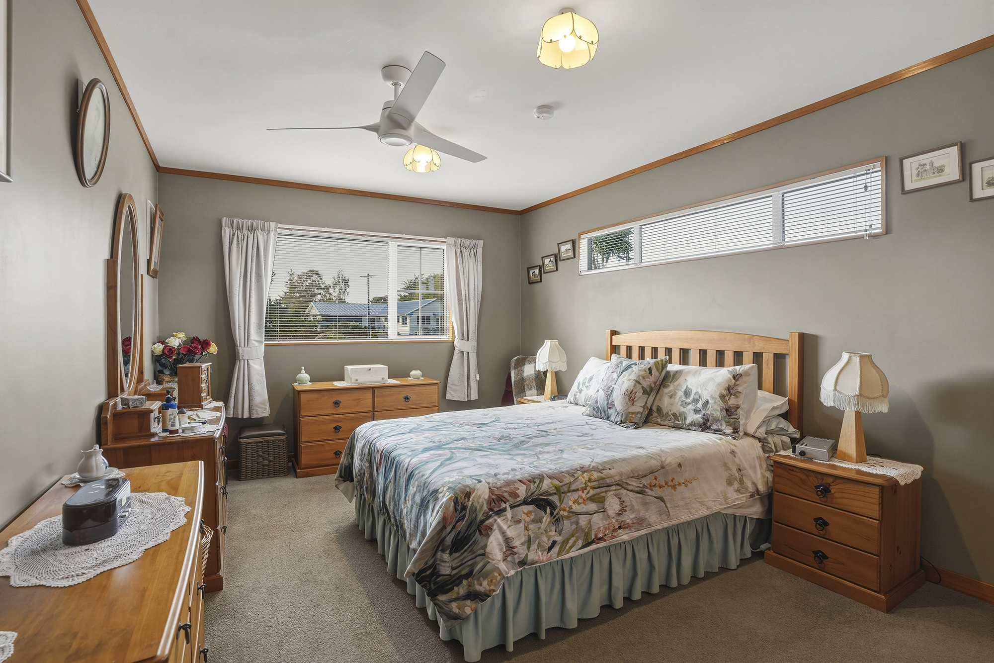 The spacious master bedroom offers generous wardrobe storage and is complemented by a ceiling fan for those warm summer nights, while all three bedrooms benefit from double glazing for added comfort and efficiency.
