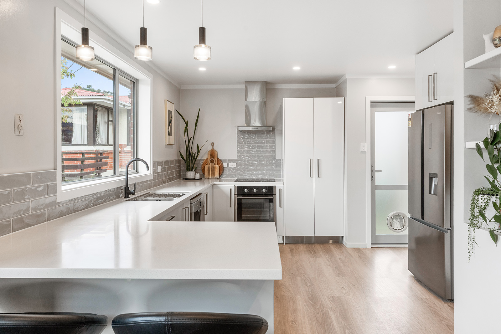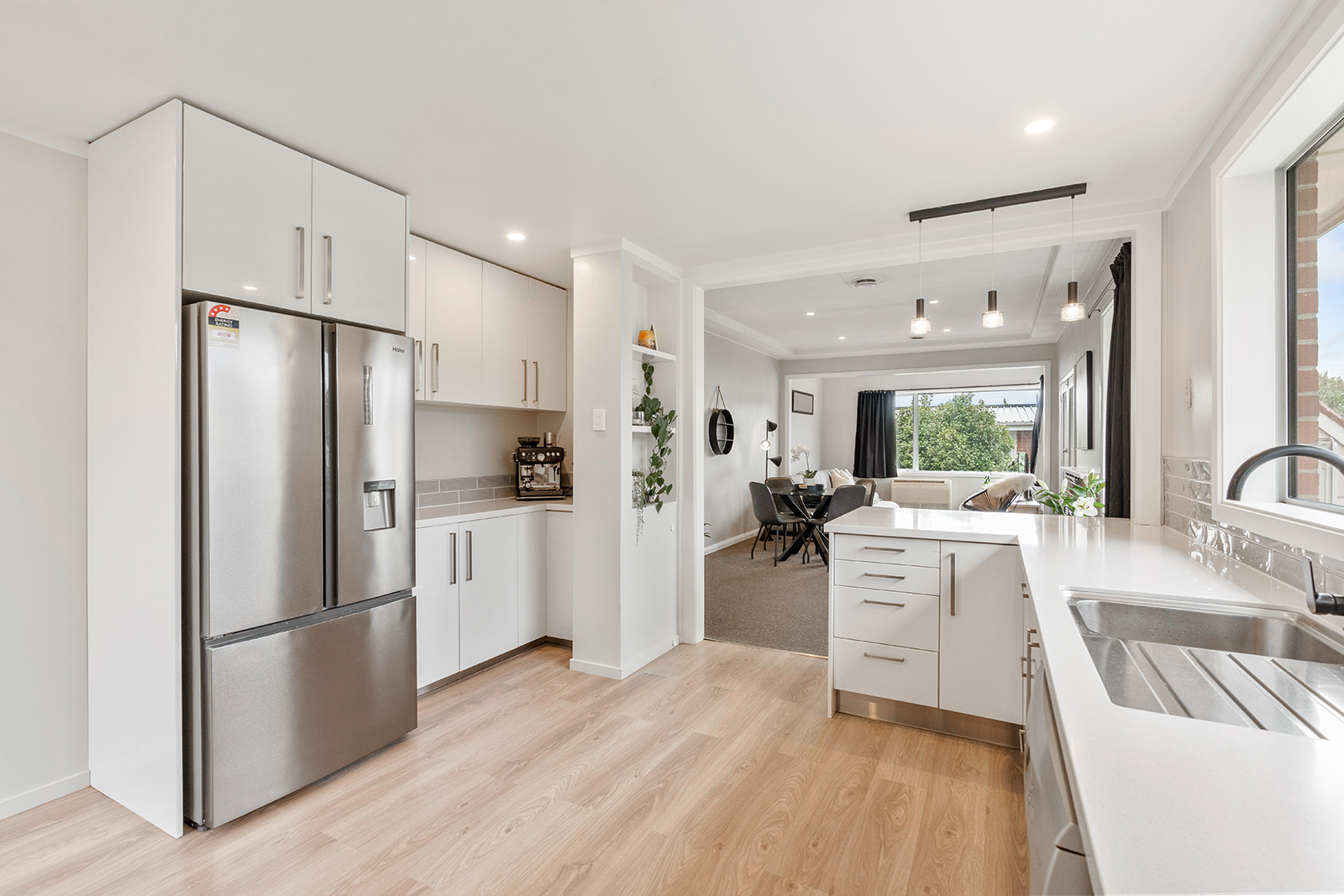 Warm and inviting, this property offers two bedrooms off the hallway, and a spacious open plan kitchen, dining and living area, centred around a stunning, well-appointed new kitchen that will impress. Designed for comfort, the home is kept warm year-round with two heat pumps and a cosy wood burner, creating a welcoming place to relax. A versatile third bedroom with its own toilet, along with a hobbies room, opens up a range of possibilities for guests, working from home or creative pursuits.