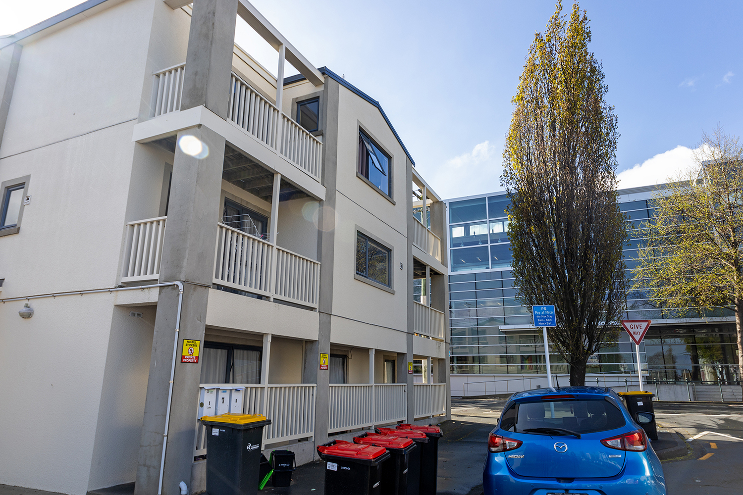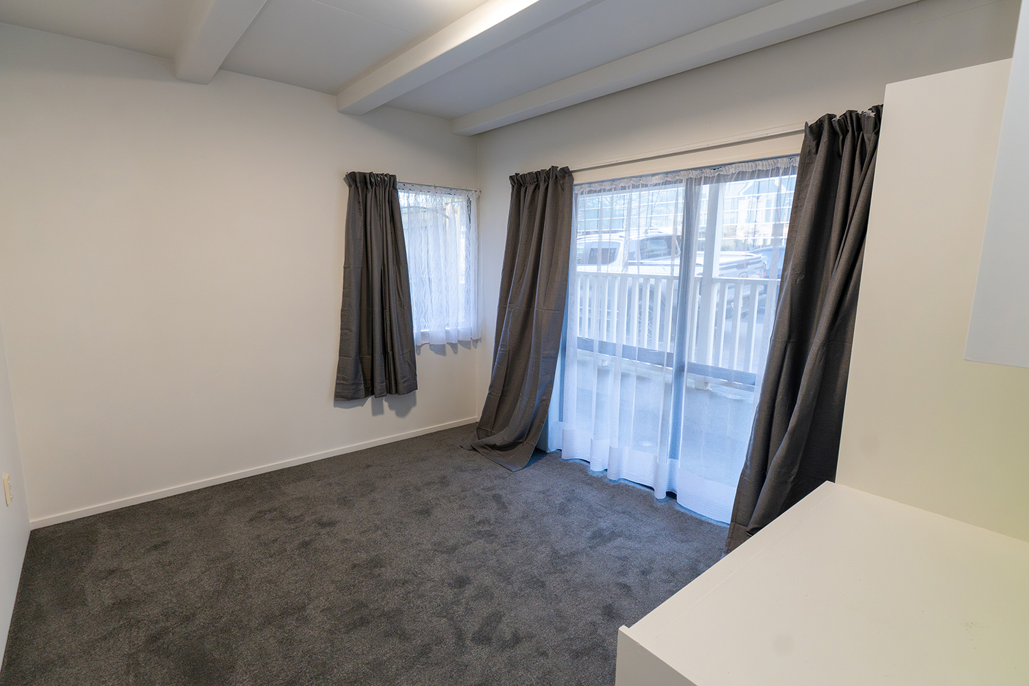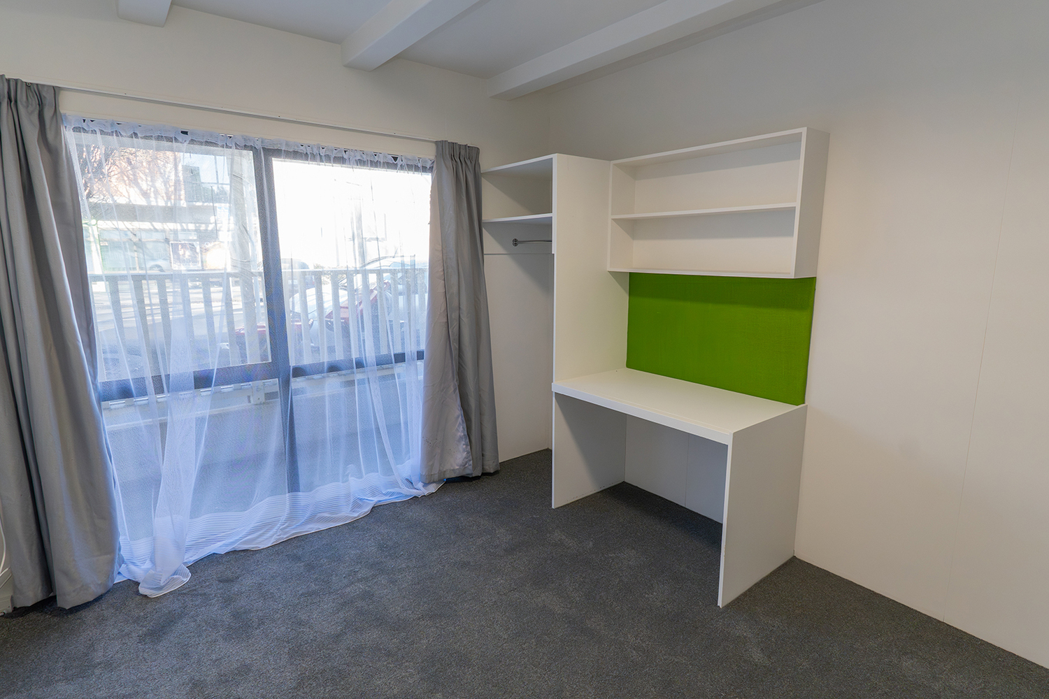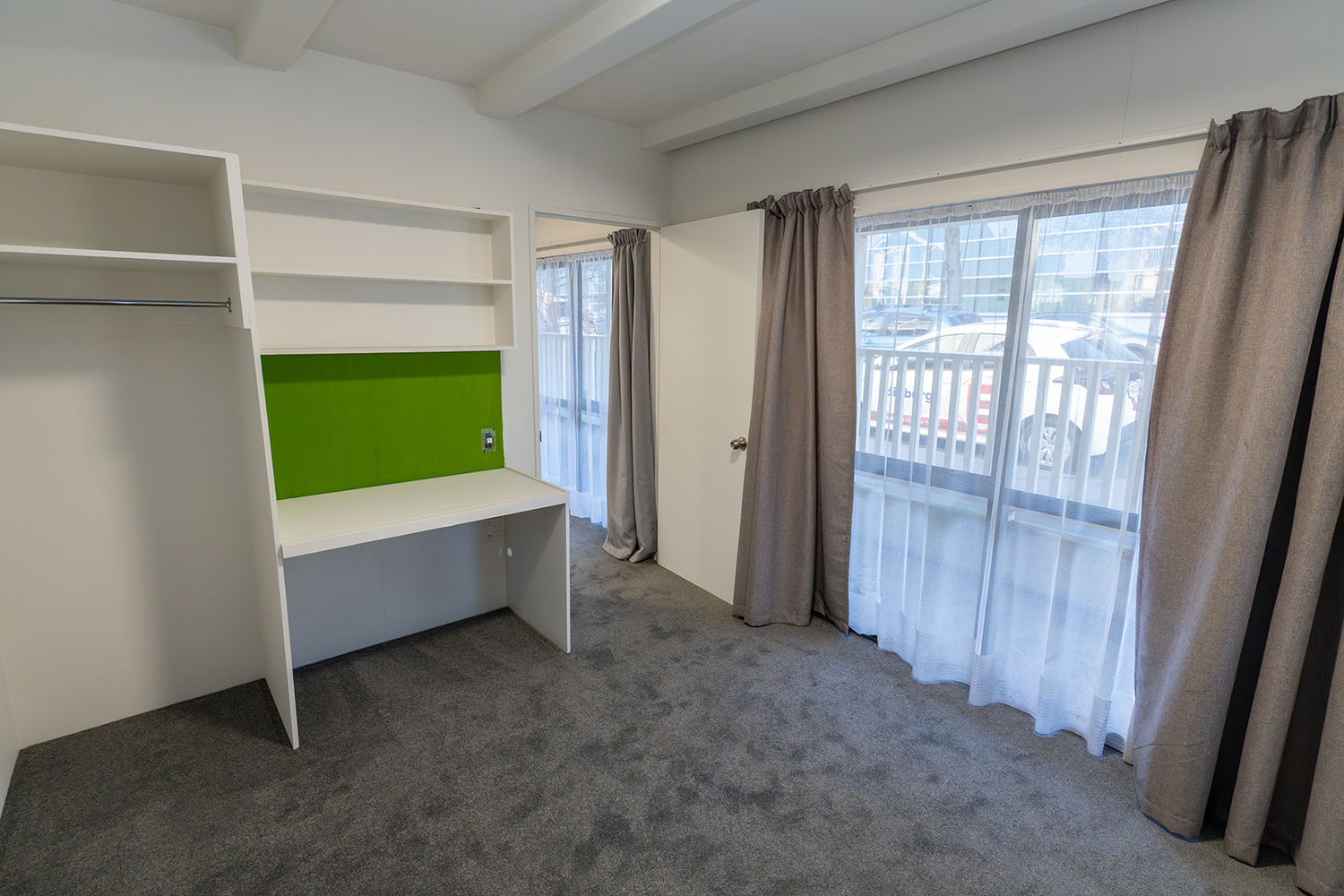 This well-appointed flat is directly across from the Uni Library, offering unbeatable convenience for students. The spacious living/dining area flows into a newly renovated kitchen, complemented by fresh paint and new carpet throughout – move-in ready! Two bathrooms ensure easy shared living, while each bedroom includes a built-in desk and open wardrobe for study and storage.