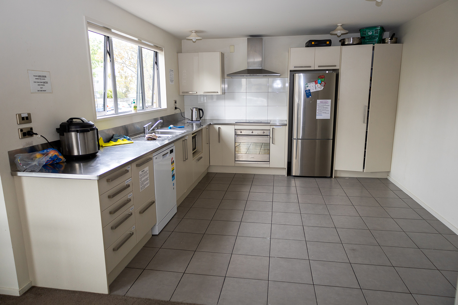 Shared common areas are cleaned once a week by a cleaner. These spaces feature a dishwasher, an additional fridge/freezer, microwave, table and chairs, couch, and a washing machine and dryer.