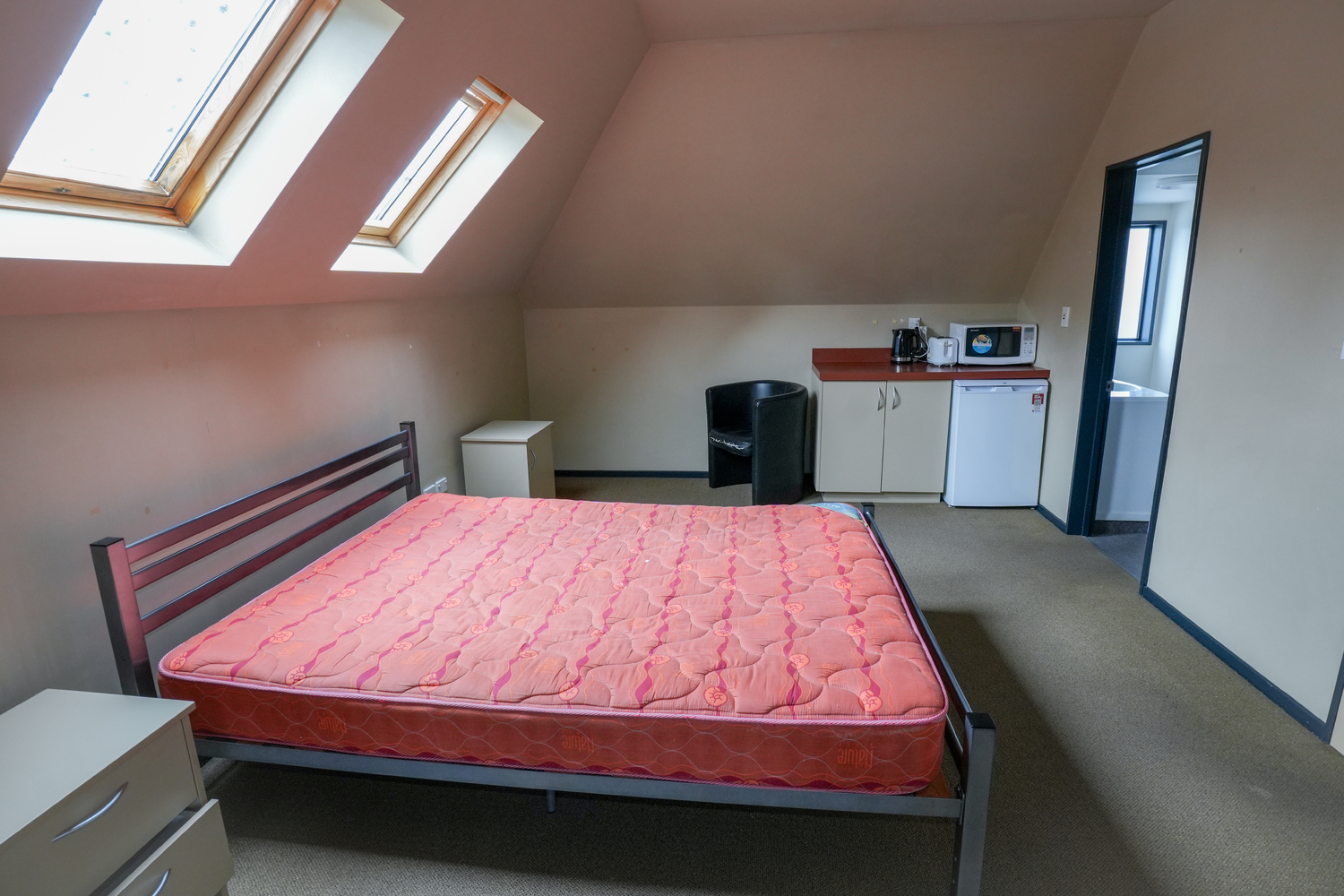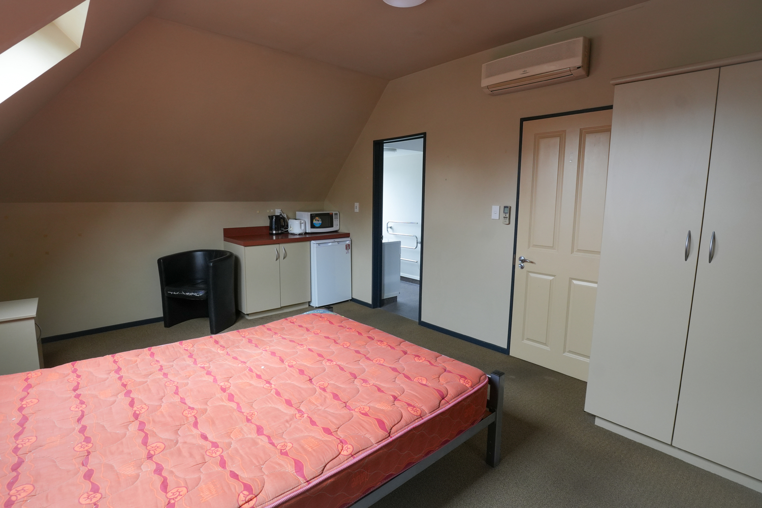 Spacious studio rooms with ensuite bathroom. Furnished with bed and mattress, fridge, desk, microwave, jug, toaster and heat pump.