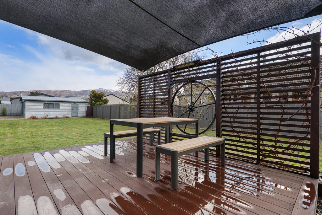 Adjacent to the studio is a cozy modern sleepout that also benefits from a heat pump and double-glazed windows. The deck area connects both buildings, creating a sheltered outdoor area, ideal for leisurely barbeques and relaxation. The generous 539m² section provides ample opportunities for future building. Additionally, there is a double garage at the back of the section, although it is not consented.