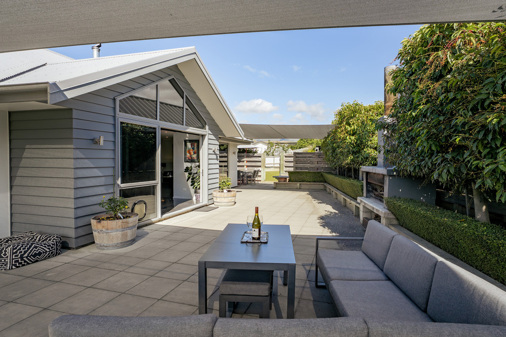 On entering this immaculately presented home you are drawn into the open plan living area where the stunning kitchen presides over this space making it the centre piece with the two-living areas either side. Stacker doors allow for a seamless flow to the private and sheltered outdoor entertainment area. This is a very practical home both for living, entertaining and heating. Everything is at your fingertips. Summer BBQs can be enjoyed, evenings around the outdoor fire and your morning coffees taken leisurely under the shade sail. Preparing meals will be a breeze in the kitchen with a large island bench, walk in pantry and an impressive sized oven.