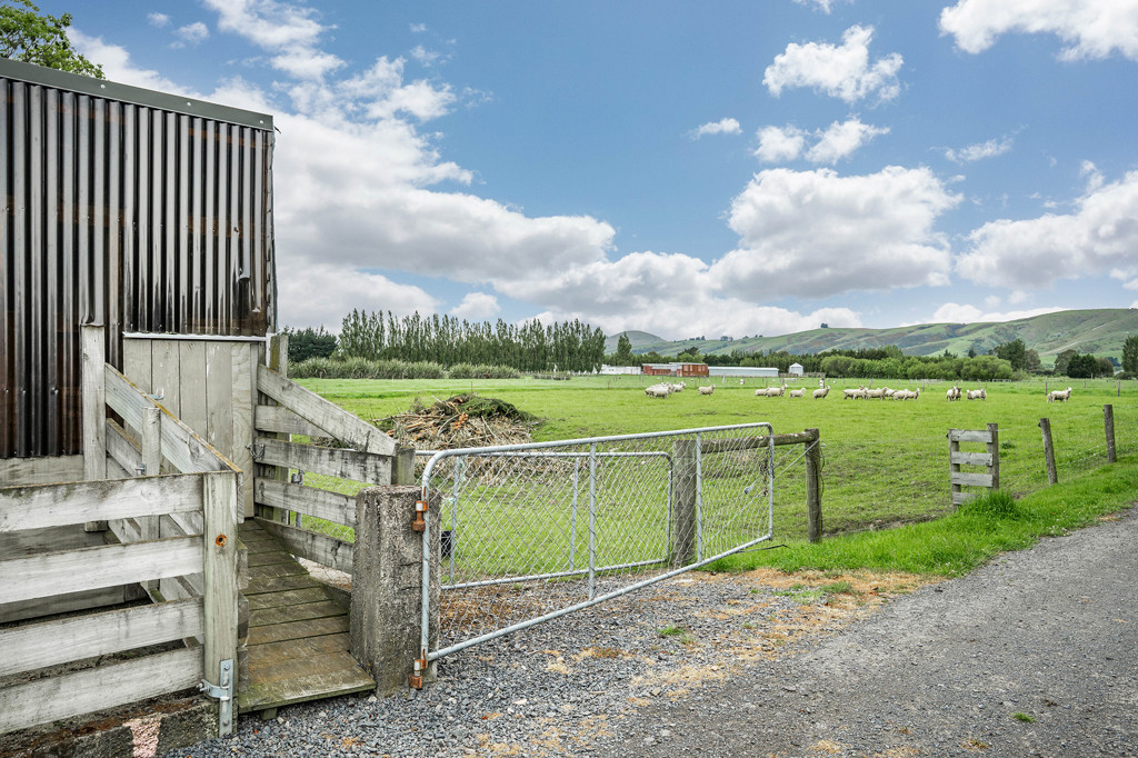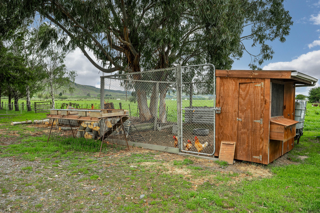 • Hen house, sheep and cattle yards, and a small shearing shed