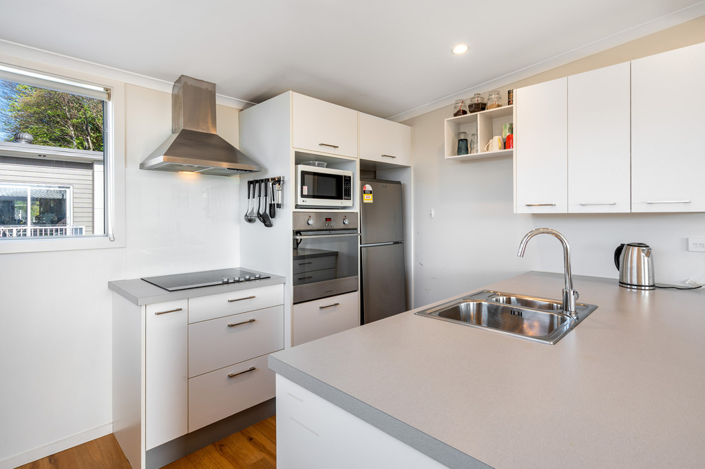 The apartment features a bright open-plan living area with contemporary finishes, with living room flowing seamlessly onto a sunny deck-perfect for morning coffees. A well-appointed kitchen, double glazing throughout, and a heat pump ensure year-round comfort and natural light. Both bedrooms are well proportioned with good storage, including a master bedroom that opens to a private patio area. The combined bathroom and laundry are modern, practical, and well designed.